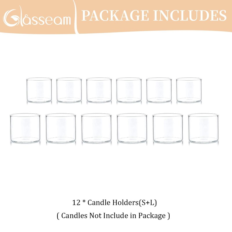Glasseam Glass Votive Candle Holders, Clear Candle Holder Set of 12, Small Tea Lights Candle Holder, Mini Floating Candle Holder for Wedding Centerpieces Tables Christmas Party Decorations, 1.6"+2"