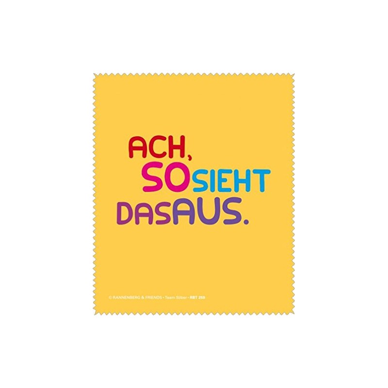 Microfibre cloth for cleaning glasses, "Ach, so sieht das aus". The glasses cleaning cloth from Rannenberg & Friends is not only functional, but also particularly beautiful. Charming, cheeky, delicate and cultivated, you will find the right cloth for every case. For yourself or as an original gift. Clear view with funny sayings.