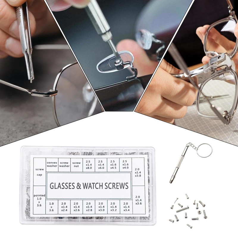 Glasses Tool Repair Kit,Screws and Nuts for Sunglasses Maintenance | Keychain Screwdriver Nuts Screws Tool for Watch, Phone, Spectacles