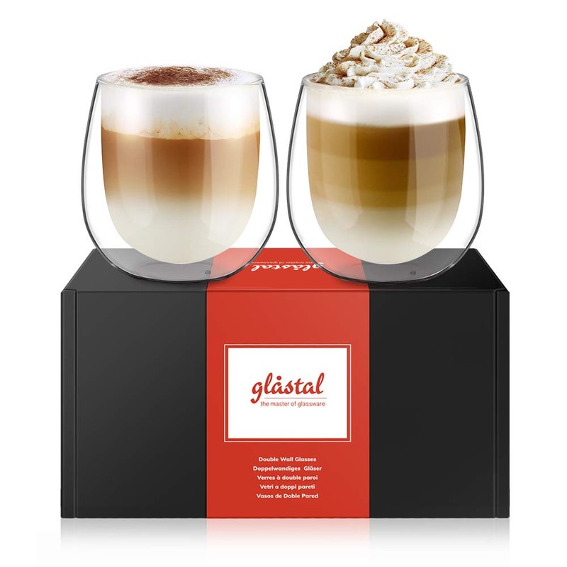 glastal 2x250ml Double Walled Coffee Glasses Mugs Cappuccino Latte Macchiato Glasses Cups for Coffee Tea Milk Juice Ice Cream Borosilicate Heat Resistant Glass Cups