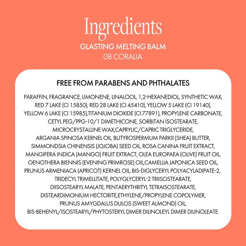 Glasting Melting Balm - High-Shine, Hydrating Tinted Lip Balm - Buildable Gloss & Vegan Formula - Korean Glossy Lip Balm with Shea Butter 0.12 oz (#08 Coralia)