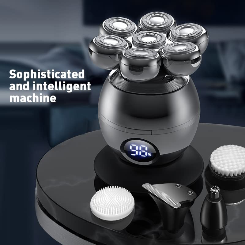 Glatzen Rasierer Herren Elektrisch, Kopfrasierer für Männer, 6 in 1 Glatzenrasierer für Männer, IPX6 wasserdichter Kopfrasierer, LED Display, Batterieanzeige und kabellos wiederaufladbar