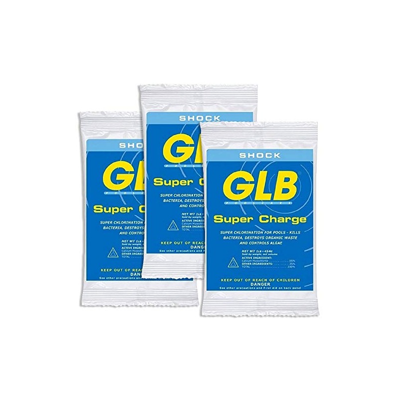 Glb super charge chlorine shock is 100% calcium Hypochlorite (65% available chlorine) granular formulated especially for super chlorination swimming pool shock treatments.