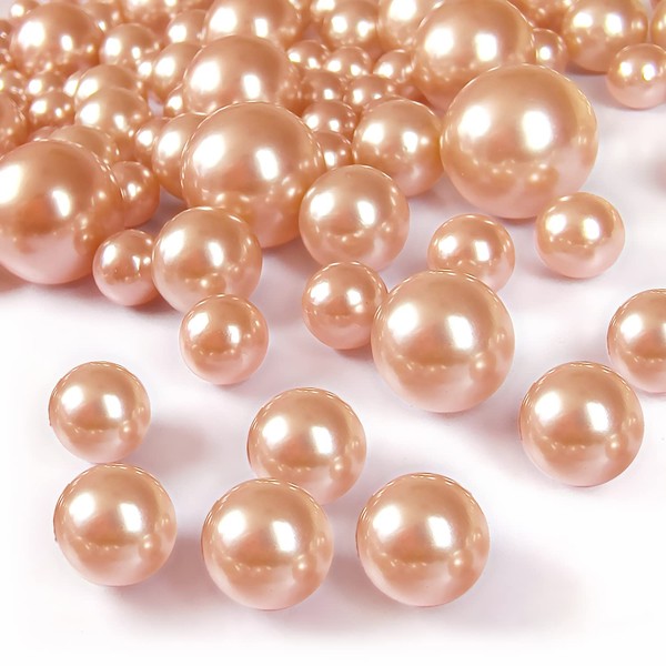 GLBYUNN 160 Pieces Pearl for Vase Filler Pearl Beads No Hole Makeup Pearls for Brushes Holder for Home Wedding Decor, 10/14/20(Champagne)
