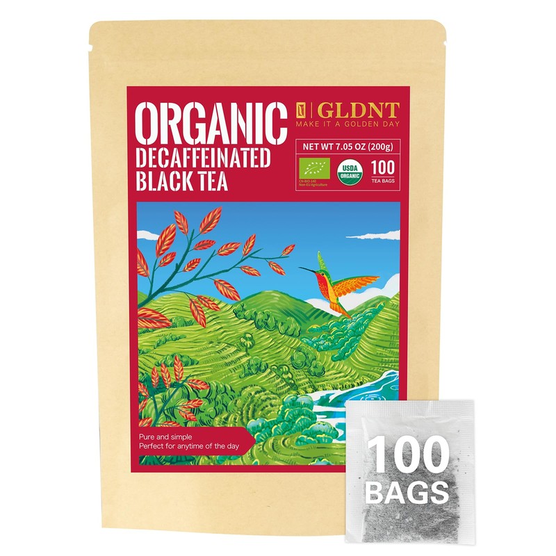 GLDNT Organic Decaf Black Tea Bags, Organic Black Tea Decaffeinated, Smooth Taste, Iced & Hot Tea, 100 Count