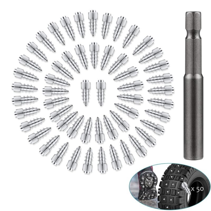 GLDYTIMES 50 Pcs Tire Studs, 4x12 mm Wheel Tyre Snow Studs with Tool, Snow Tire Spikes Screw in Tire Studs for Car Shoes Truck Snowmobile Bicycle Off Road Vehicle ATV Anti-Slip/Anti-ice Accessories