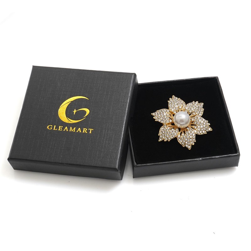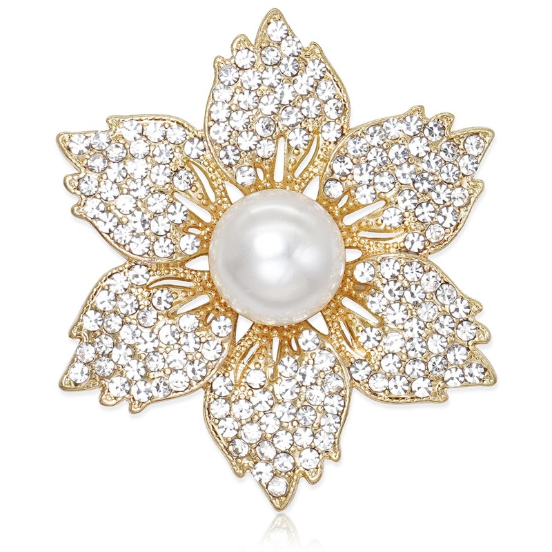 Gleamart Camellia Brooch with Pearl and Rhinestone Flower Brooch for Women and Girls White