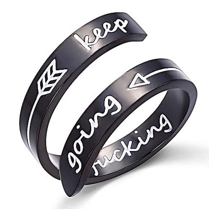 Gleamart Inspirational Ring Stainless Steel Engraved Ring Gift Keep Going Arrow Black