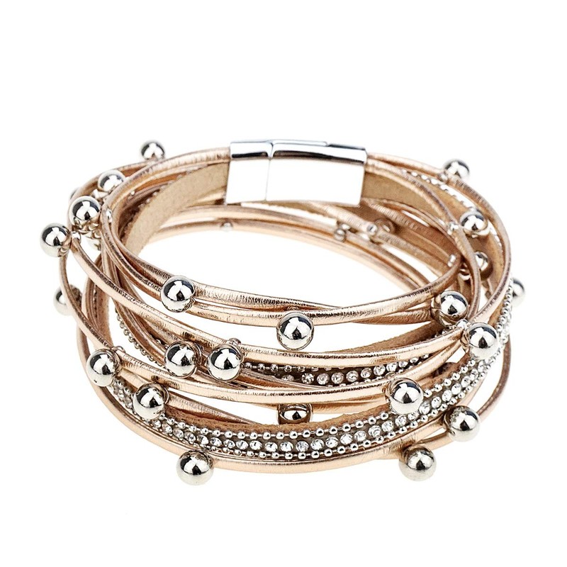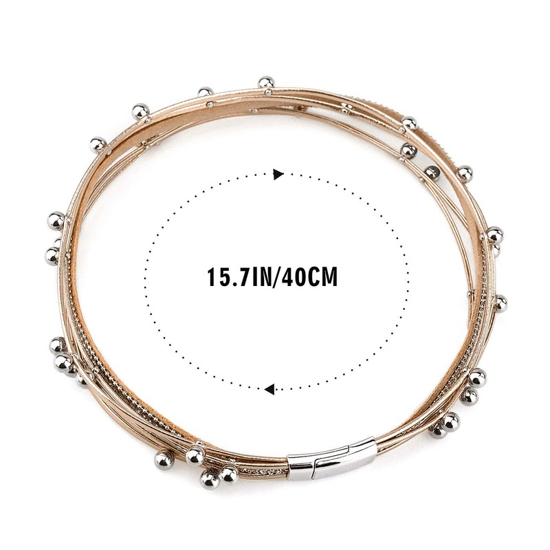 Gleamart Multi-layer Leather Beads Bracelet Wrap Cuff Bracelet for Girls Women, One Size, Leather, Without Stone, One Size, Leather, without stone