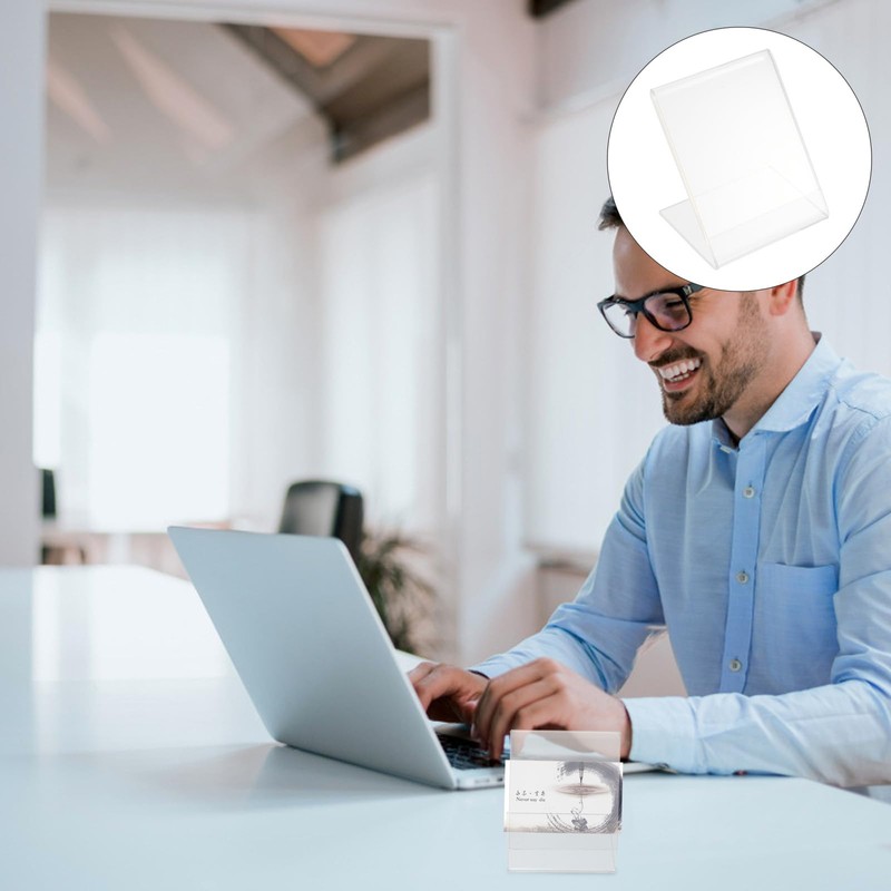 Acrylic Sign Holder Slanted L-shaped design helps to stand on table stably.table top This item is a display stand, which is well made by acrylic material, high clear.L Shape Display Stand It is very suitable for displaying information in restaurants, supermarket, store and other occasions