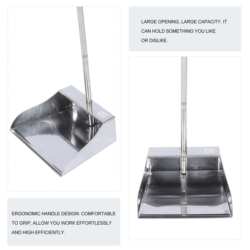 - Fine workmanship, elegant design, mirror polish surface, Long Handle Stand up Dustpan is serve in your kitchen, home, bar and party.