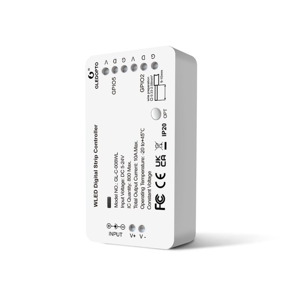 • 【Compatible with Various LED Strip Types】 The GLEDOPTO WLED LED Light Strip Controller can be used with a wide range of LED strips, including RGB, RGBW, WS2812B, WS2811, SK6812, TM1814, WS2813, and WS2815.