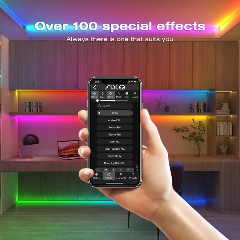 - Dynamic modes: The WLED app has over 100 dynamic modes to choose from, suitable for a variety of application scenarios such as birthday parties, wine tastings, and evening relaxation