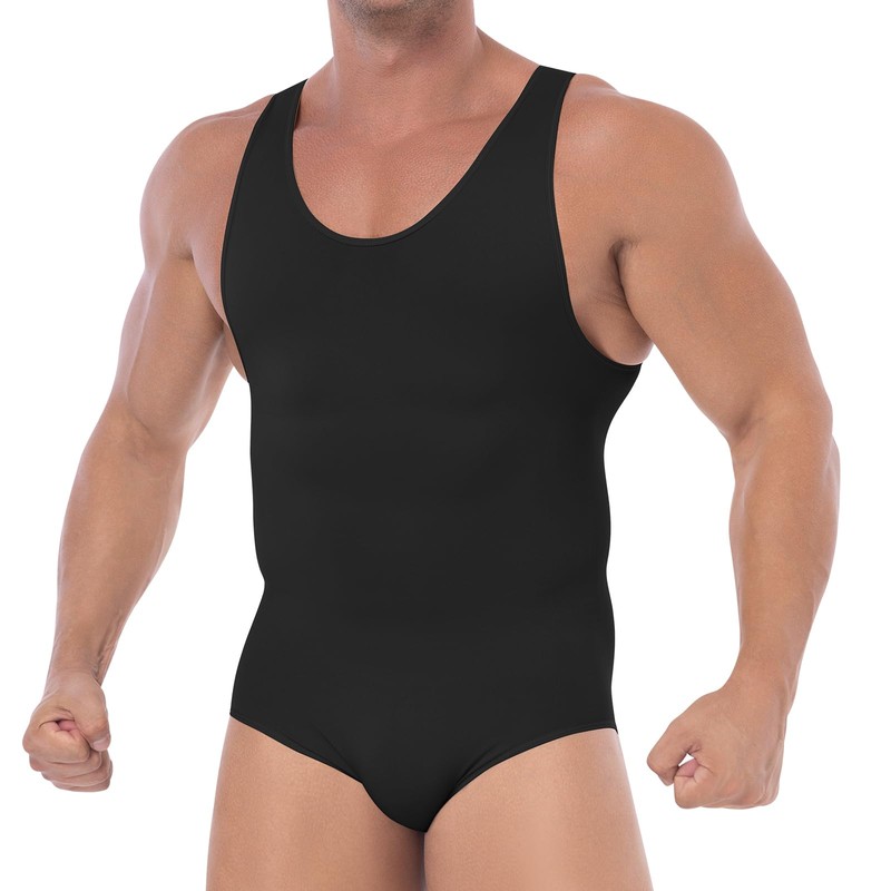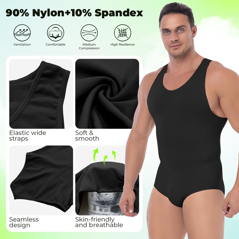 - COMPRESSION BODY SHAPER WITH SEAMLESS DESIGN: Our mens shapewear tummy control leotards bodysuit is adopts 360-degree seamless integrated molding which not only can slim your belly, but also tighten your thigh fat. With the seamless design, wearing this slimming underwear for men can perfectly hides under any type of clothes. Deep U-neck design will be a super good partner under shirts, hoodie or suits and wider shoulder straps help the body shaper stay in place