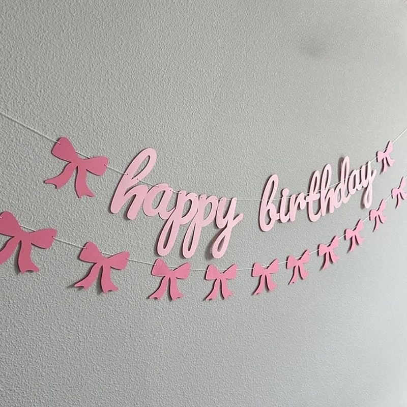 - Set includes: the set contains 1 piece "Happy Birthday" paper flags, with a 12 pieces of pink cute bows, send a ribbon. With the pink bow garland themed design, you allow you to set up a sweet and fun atmosphere scene.