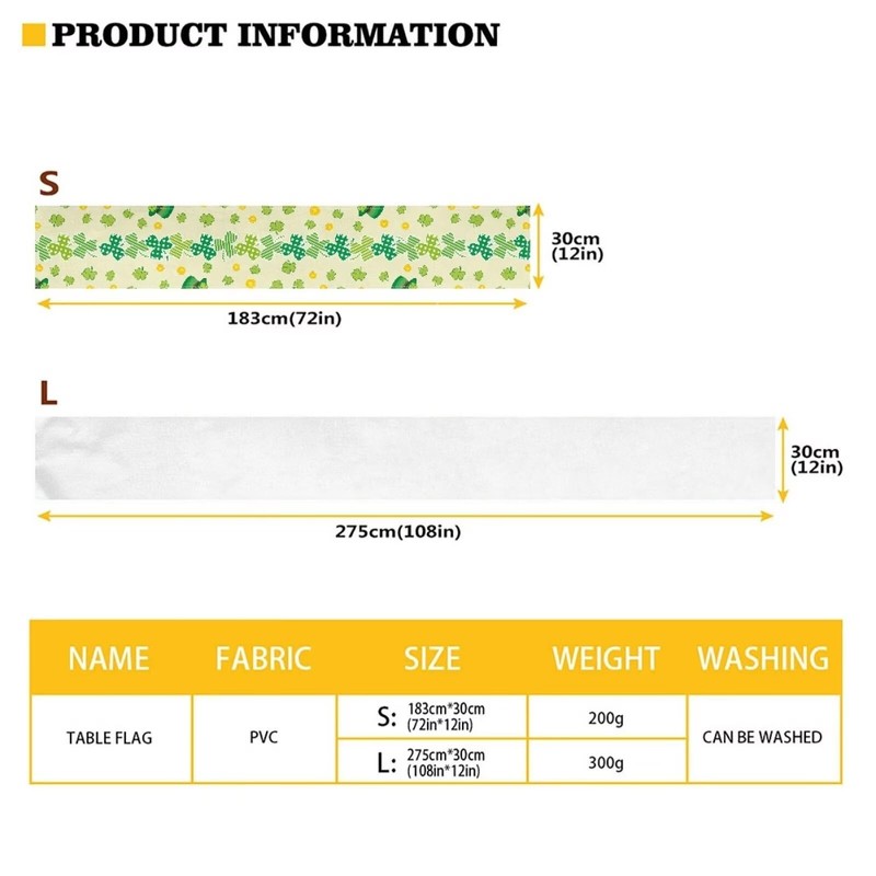 - Size - Small:width 12 inch x length 72 inches,Large:Width 12 inch x length 108 inches,suit for short table and long table