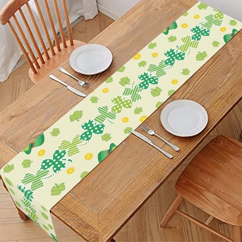 GLENLCWE Table Runner Happy St. Patricks Leaves Table Runner for Wedding Centerpiece Home Decorations Fall Winter Outdoor Decorations