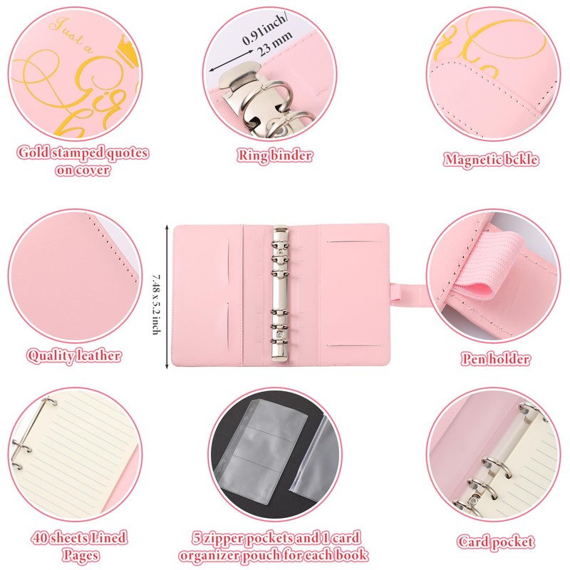 - Sturdy 6 Rings Design: the cover of the business journal for women is mainly made of PU leather, with gilding prints and magnetic buckle, delicate and sturdy, with 4 inside pockets and together with refill paper, can meet your daily writing needs; The zipper bags and card pockets are mainly made of PVC, waterproof and tear resistant, and can be installed business cards, coins, transportation cards, change and so on