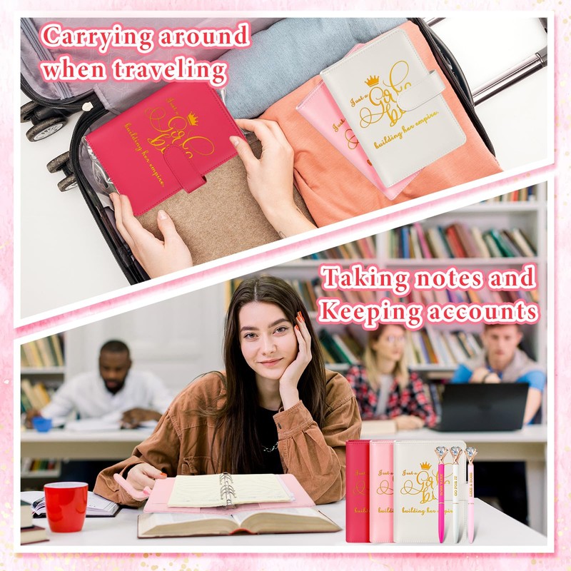 - Nice Gift Combination: the package includes 3 pieces of A6 notebook binders with 40 sheets of loose leaf paper, 15 pieces of zipper bags, 3 pieces of card pockets and 3 pieces of diamond pens; The nice combination and sufficient quantity can well meet your daily gifting needs; You can send them to your colleagues, female friends, girlfriends and businesswomen