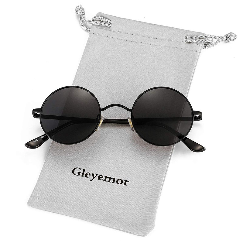 Gleyemor Polarized Round Sunglasses for Men Women Hippie Small Circle Glasses Red Yellow Lenses (Black/Grey)