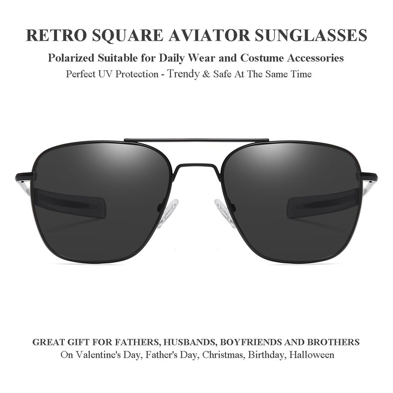 Gleyemor Polarized Square Aviator Sunglasses for Men Retro Military Tough Guy Style Shades (Black Frame/Grey Lens)