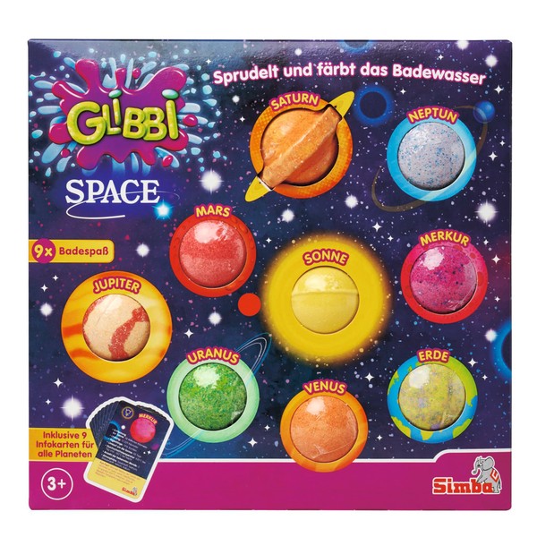- Galactic Bathing Experience - The Glibbi bath bombs set includes nine bath bombs to match our planets Saturn, Neptune, Mars, Sun, Jupiter, Mercury, Uranus, Venus and Earth. In addition, fascinating information cards are included for every planet.