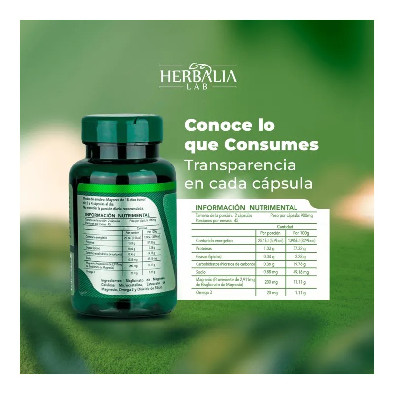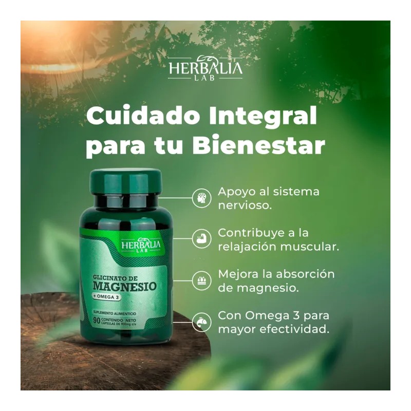Glicinato de Magnesio 400mg Magnesio Glicinato Omega 3 Frmula Avanzada Alta Absorcin 90 Cpsulas Herbalia Lab