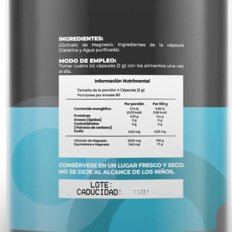 Mejora tu bienestar con Glicinato de Magnesio, una de las formas más biodisponibles de magnesio, ideal para apoyar la función muscular, nerviosa y ósea.