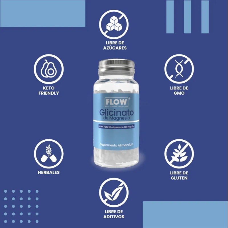Glicinato De Magnesio 90 Cápsulas De 500 Mg Flow
