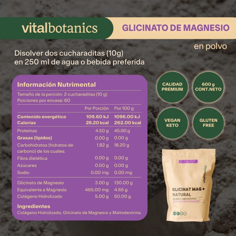 🌟 ⭐ Glicinato De Magnesio Polvo Con Colágeno Hidrolizado Puro 600g 60 Porciones Sabor Natural Suplemento Alimenticio 100% Orgánico Keto Friendly Y Libre De Gluten Vitalbotanics ⭐ 🌟