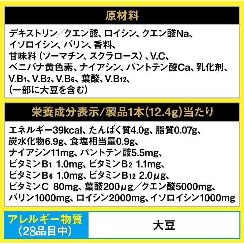 - Each bottle (12.4ℊ) contains 5000mg of citric acid and 4000mg of BCAA. Contains 10 bottles. It has a lower osmotic pressure than body fluids, so you can replenish energy, fluids, and minerals even during exercise. Contains 7 types of B vitamins and vitamin C.