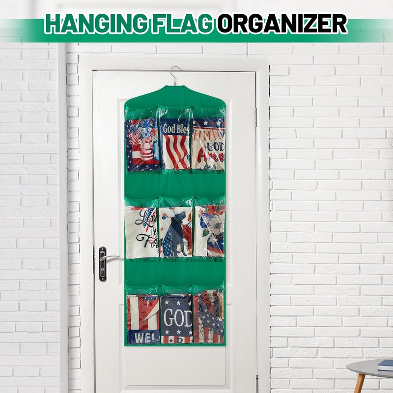 GliCraft Flag Organizer for House and Garden Flags with a Total of 30 Pockets Two Sided Storage Bag Holder Hanger with Swivel Hanger Hook for Closet Door Garden Porch