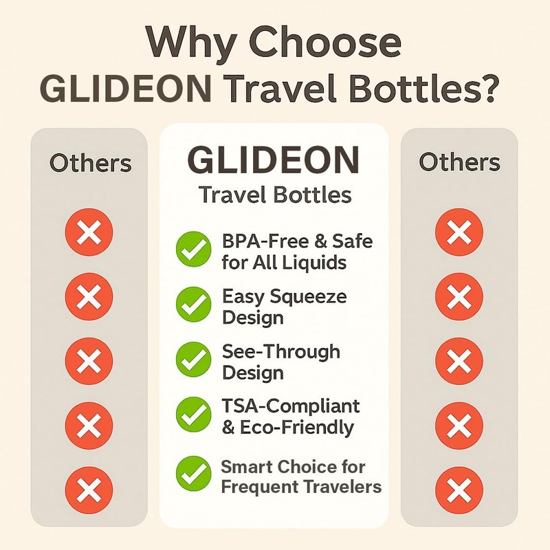 Glideon TSA Approved Travel Bottles - 16-Pack Leak-Proof Refillable Silicone Containers for Shampoo, Lotion | Travel Size Bottles | Toiletry Kit for Men and Women