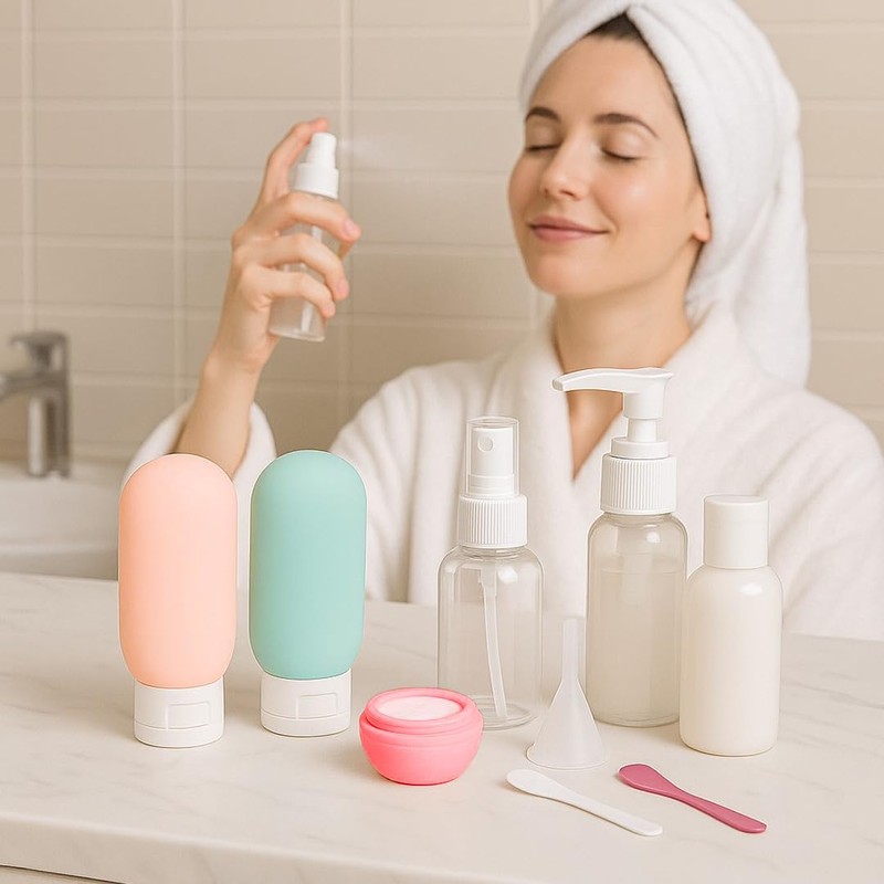 - Effortless Refills & Easy Cleaning: Tired of messy spills and hard-to-clean mini travel bottles? These refillable cosmetic containers set includes a cleaning brush, funnels, and spatulas to make refilling and washing fast and frustration free. The soft silicone design ensures every squeeze counts making it easy to use your travel size toiletries to the last drop.