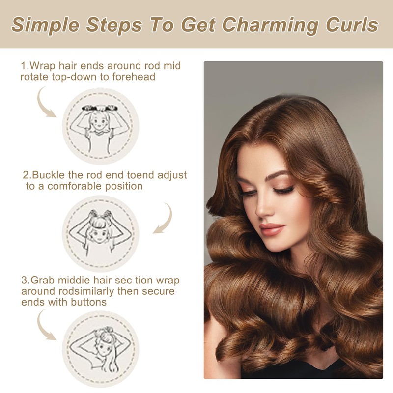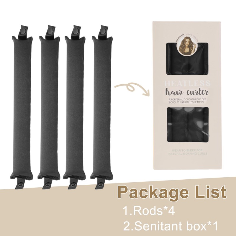 This set includes 4 heatless curling rods that can be adjusted according to your needs. With a secure snap fastener, it stays in place while you sleep and is suitable for a variety of hair types, including straight, wave, long, and medium hair.