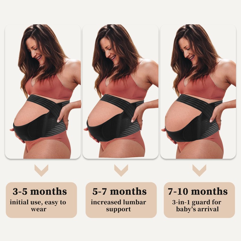 Crafted from breathable elastic fabric, this adjustable 3-in-1 maternity belt targets abdomen, pelvis, waist, and back pain.