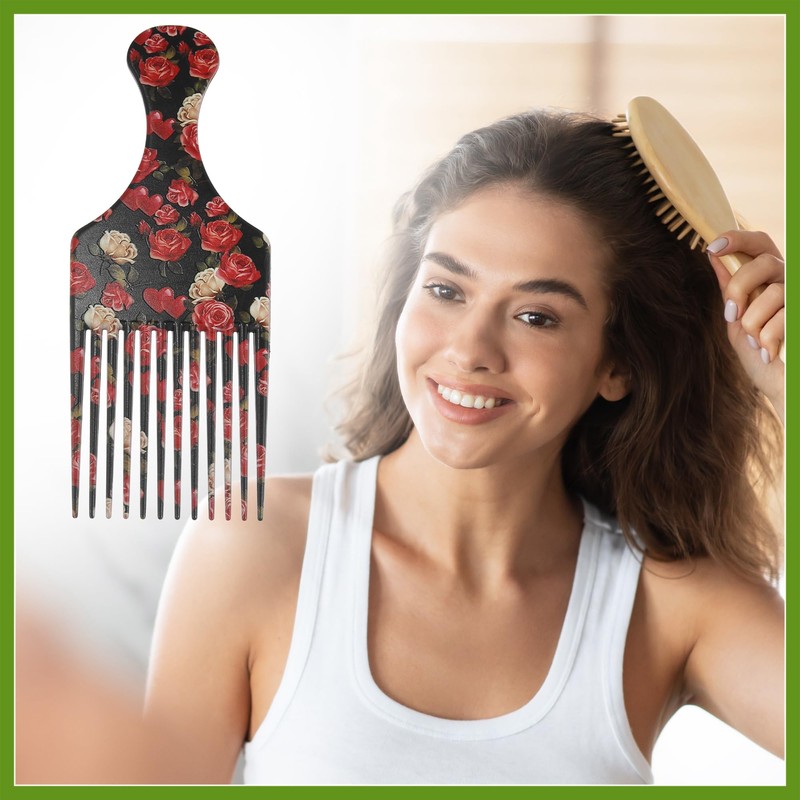 GLIDESMOOTH Wide Tooth Afro Hair Pick Comb, Hair Styling Tool for Men Plastic Flower Pattern, 7.5 Inch Beauty