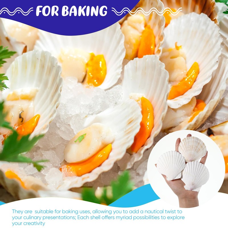 - For Artistry and Baking: let your creative instinct flow with our large seashells, enhancing your design, decoration, and DIY projects, ideal for shell jewelry, shell candle making, Christmas decorations, shell fairy light, shell garland, etc.; They are also suitable for baking uses, allowing you to add a nautical twist to your culinary presentations; Each shell offers myriad possibilities to explore your creativity