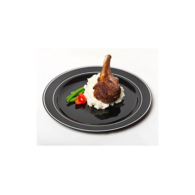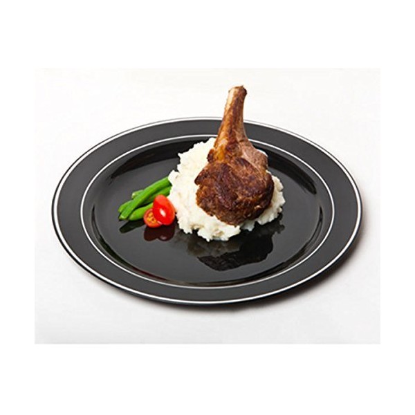 Glimmerware 9 Inch Buffet Plastic Plate in Black with Silver Band 120 CT