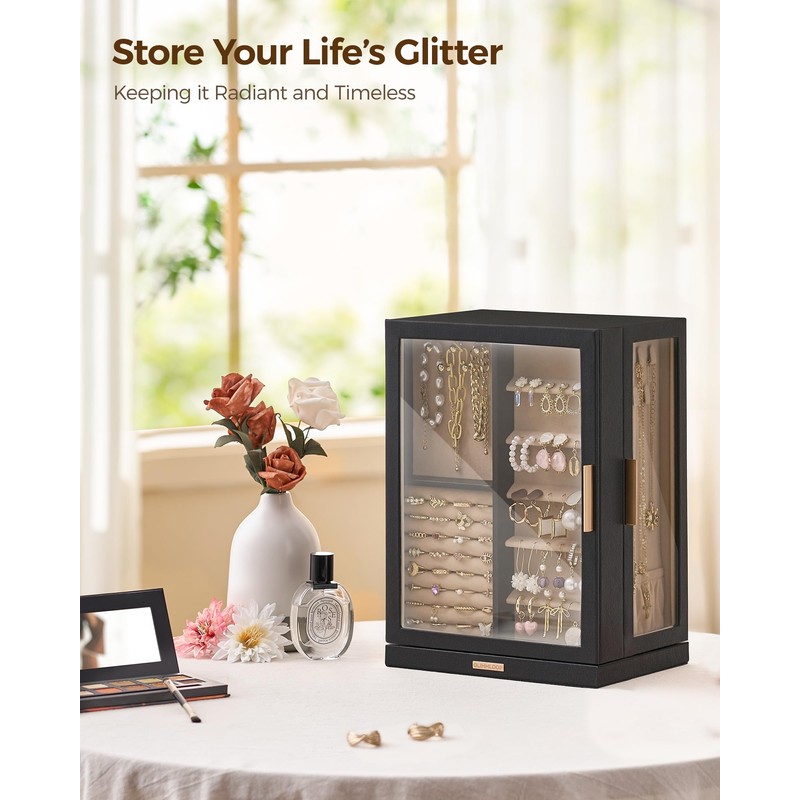 - 【Protect & Display】This jewelry box features three clear glass windows, a vertical layout, 360° rotation and a fully enclosed design. It's dustproof and moisture-resistant, keeping your jewelry safe while letting you easily display and find your pieces at a glance.