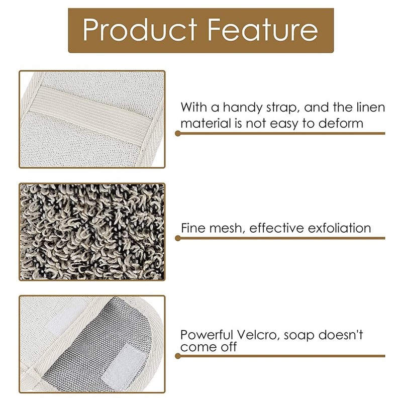 - The linen soap bag can quickly absorb and disperse foam for exfoliation or massage. Rubbing produces rich foam on the skin, releasing dead skin and promoting blood circulation.