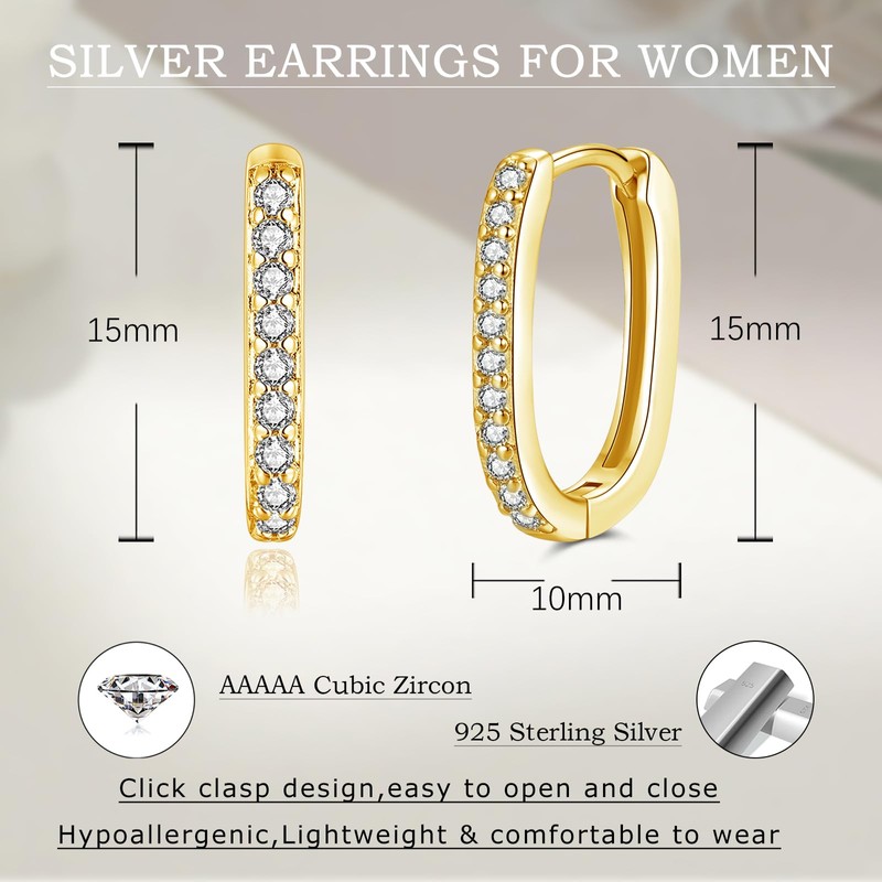 - High-quality material: these hoop earrings are made of 925 sterling silver and white gold / rose gold / gold plated + zirconia. 925 sterling silver oval hoop earrings are hypoallergenic and skin-friendly, nickel and lead free. 925 silver hoop earrings are suitable for almost all sensitive ears and are also very comfortable to wear for longer periods of time. Silver hoop earrings have a classic earring closure that is easy to put on and take off.