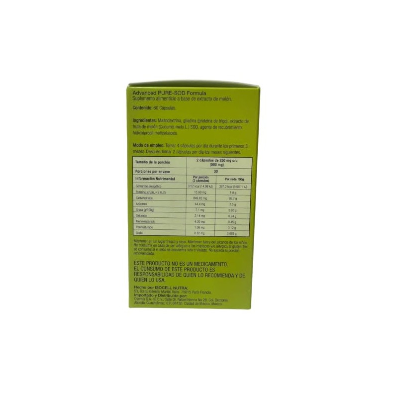 Glisodin Skin Nutrients - Advanced PURE-SOD Formula - Suplemento Alimenticio a base de extracto de meln - 60 cpsulas DIEBE DISTRIBUIDORA DE EQUIPOS