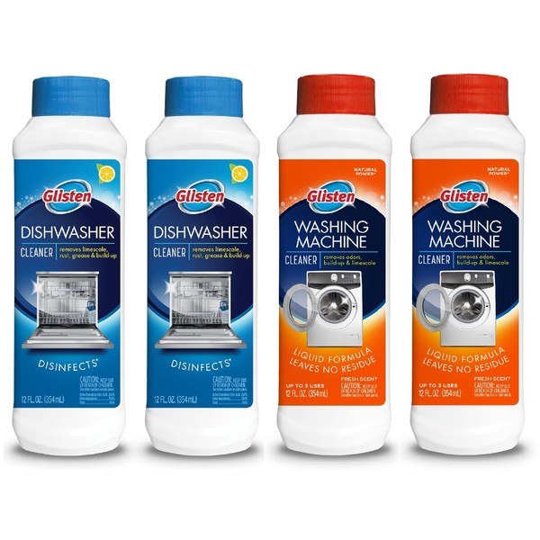 Glisten Dishwasher Magic Machine Cleaner and Disinfectant 2-Pack and Washer Magic Washing Machine Cleaner and Deodorizer 2-Pack