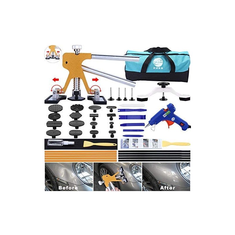 - EASY to OPERATION: The paintless dent repair kit is suitable for any person to operate, even the girl can easily repair. Most of the dent remover can be finished in half an hour, it can save your much money and time, in addition, the auto body dent puller set can be used unlimited time.