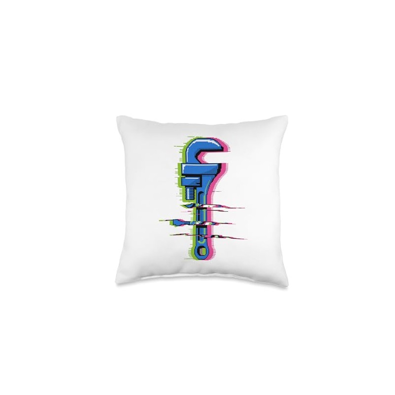 Glitch Art Plumber Wrench Plumbing Pipe Drain Plumbers Throw Pillow