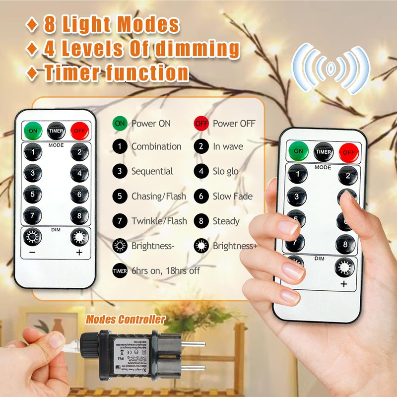 - Convenient Remote Control for Easy Operation: Enjoy effortless control of your fairy lights with vines thanks to the user-friendly remote. Whether you're relaxing on the couch or settling into bed, you can easily switch modes, adjust brightness, and set timers without the need for manual adjustments.