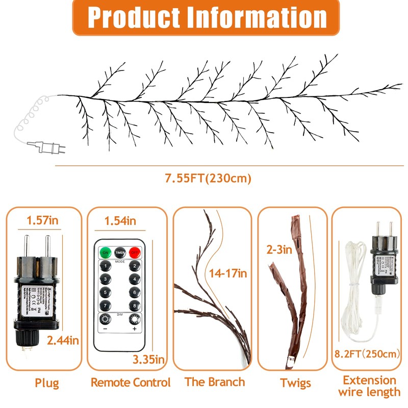 - Exquisite Craftsmanship and Natural Beauty: 7.5 - foot handcrafted light with 18 flexible branches and 144 LEDs, mimicking willow twigs.