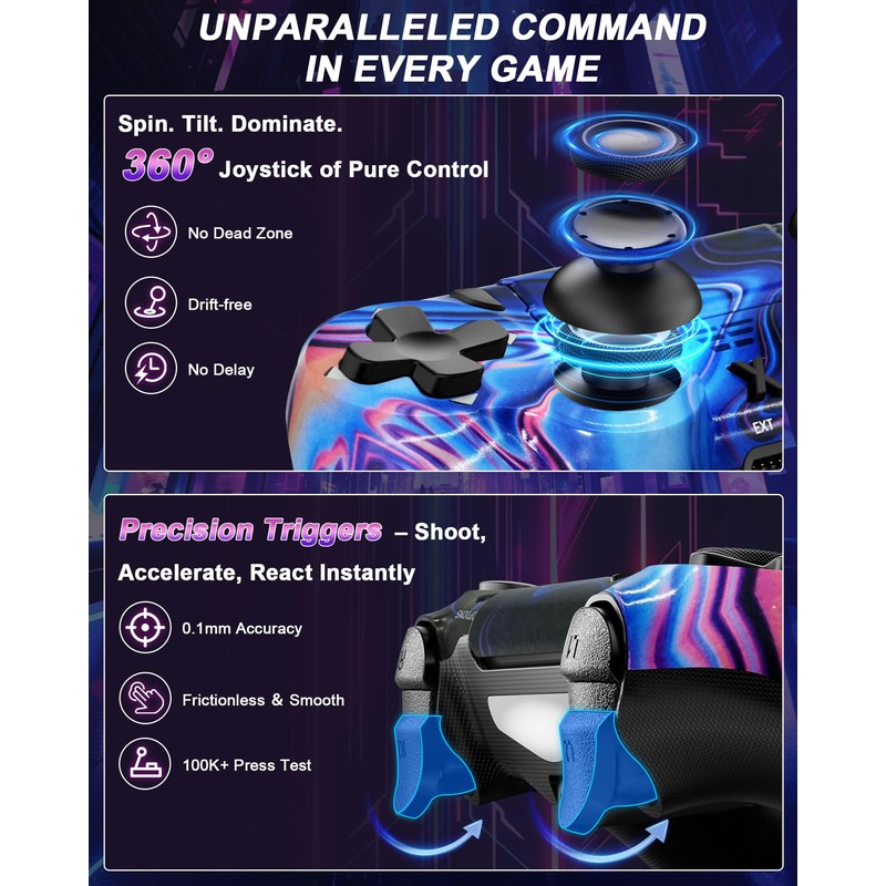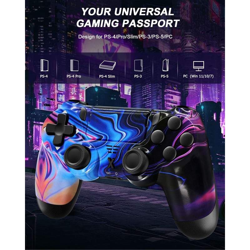 Glitfix Wireless Controller für PS-4,Game Controller Kompatibel mit PS-4/Slim/Pro,Bluetooth Gamepad Joystick mit RGB-Licht,1300-mAh-Akku, 3,5-mm-Audiobuchse und Turbo-Funktion