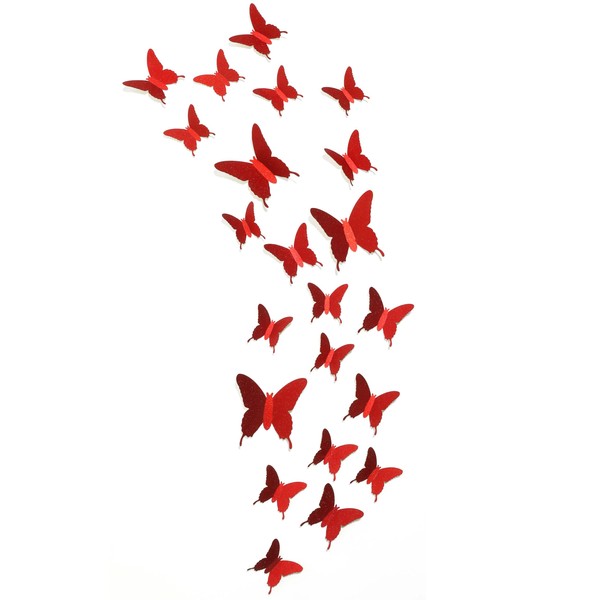 Glitter 3D Butterfly Wall Stickers (36 pcs)– Red Sparkle Butterfly Wall Décor for Bedroom, Living Room, Hallway, Party Decorations, Wedding Backdrop, DIY Wall Art, Removable Peel and Stick
